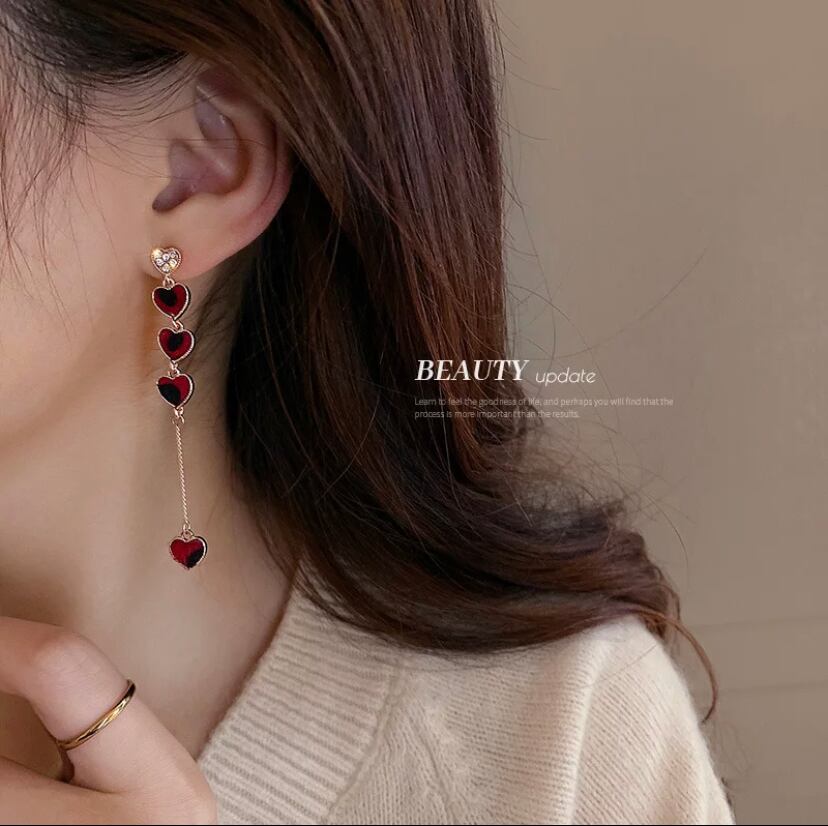 ロングハートピアス♥️髪からチラチラ見えるハートピアスが可愛くお洒落なピアス!